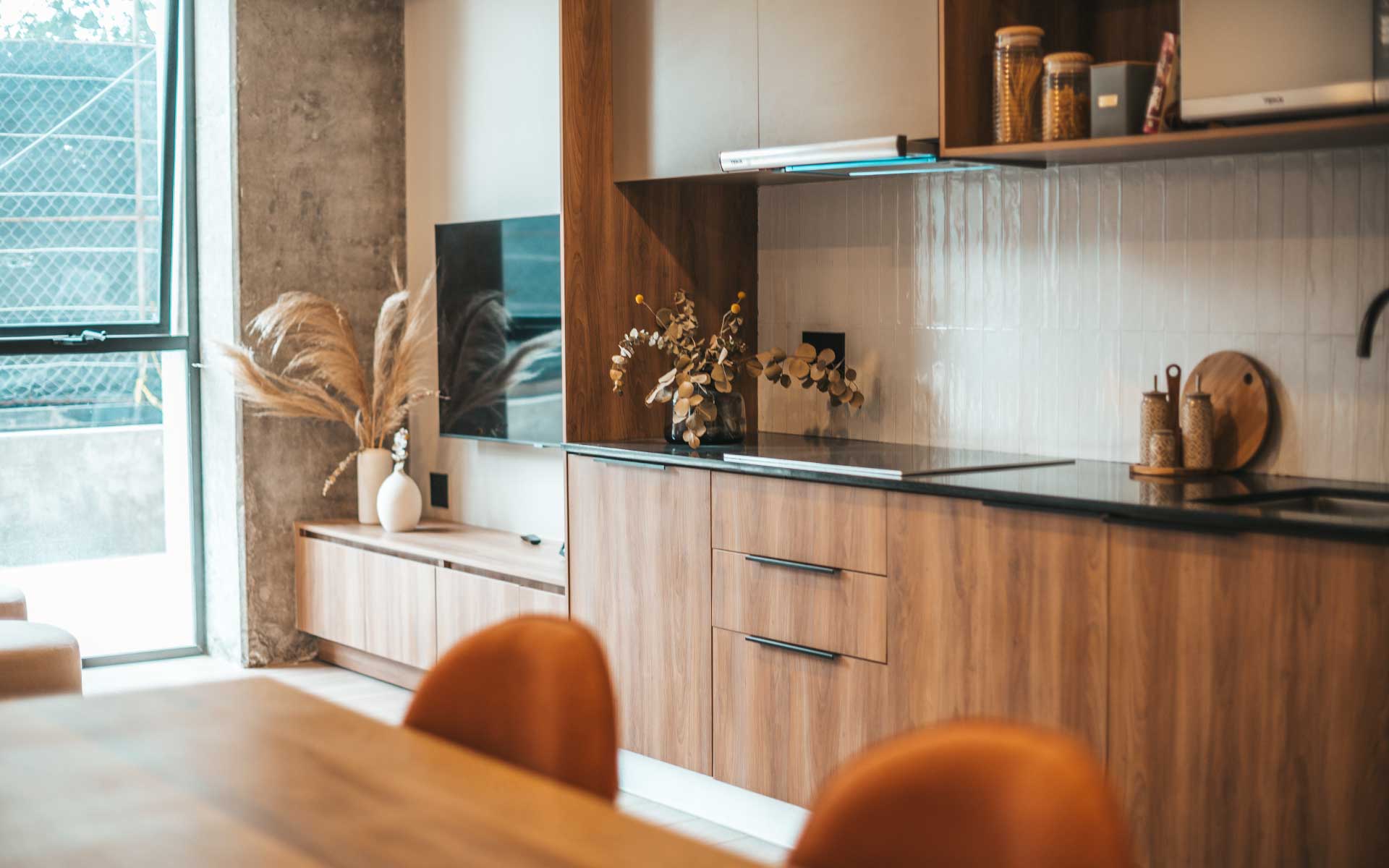Visita nuestra sala de exhibición. Podrás ver la variedad y calidad de los materiales aplicados en cocinas, clósets, baños, puertas de intercomunicación y mobiliario especial. Agenda una cita ahora >>.